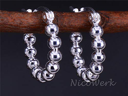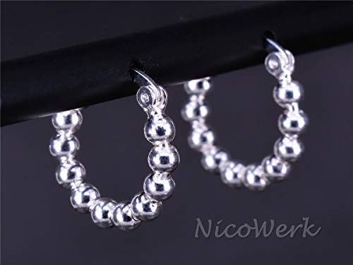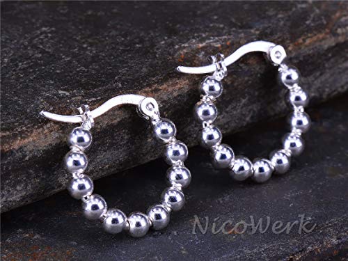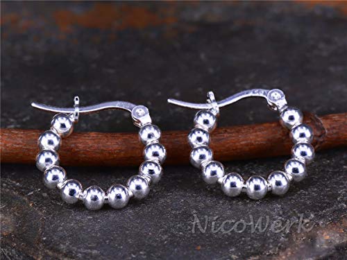 NicoWerk SOR363 - Orecchini a cerchio da donna in argento sterling 925, forma rotonda, con sfera liscia