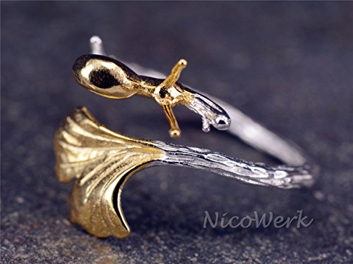 NicoWerk SRI259 - Anello in argento 925 placcato oro a forma di lumaca, regolabile.