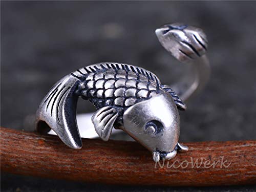 Bellissimo anello in argento sterling 925, vintage, annerito, a forma di pesce
