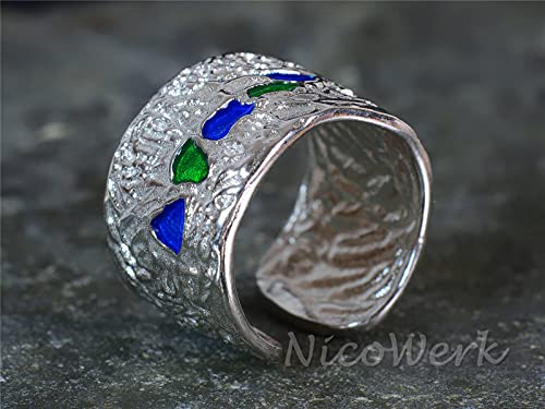 NicoWerk SRI657 - Anello da donna in argento sterling 925, stile rustico, con struttura regolabile, aperto