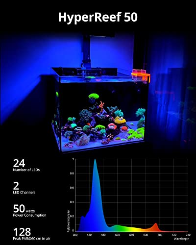 NICREW HyperReef 50W LED Acquario Marino, Lampada Acquario Marino a Spettro Completo per Corallo, Plafoniera LED Acquario Marino con Staffa