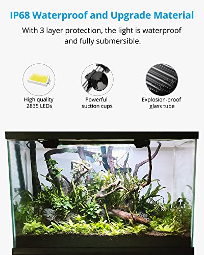 Il design impermeabile IP68 può essere immerso completamente sott'acqua o fissato al lato dell'acquario. Puoi posizionarlo dove vuoi con potenti ventose.