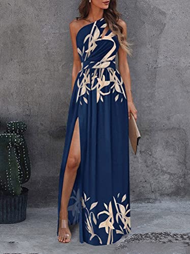 Nicticsi Abiti da Cerimonia Donna Lunghi Eleganti Pizzo Semplice Glamorous Abito da Sera Smanicato Backless Vita Alta Spacco da Cocktail Partito Vestiti C Blu XL