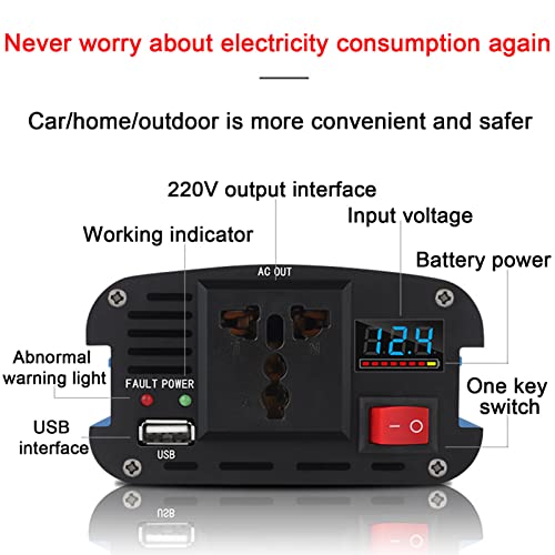 INVERTER AD ONDA SINUSOIDALE MODIFICATA: Converti DC 12V 24V 36V 48V 60V in AC 110V 220V alimentazione domestica tramite inverter. Viene fornito con 1 presa CA a 3 pin, 1 porta USB, 1 cavo per accendisigari (58 cm) e 1 cavo con clip a coccodrillo (60 cm).