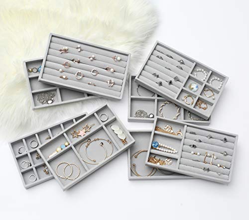 Nideen - Set di 8 vassoi portaoggetti per cassetti, impilabili e impilabili, per orecchini, collane, bracciali, anelli e anelli, confezione da 8 pezzi