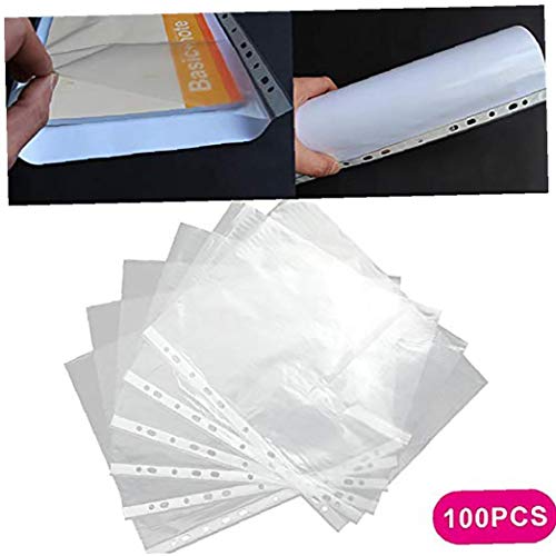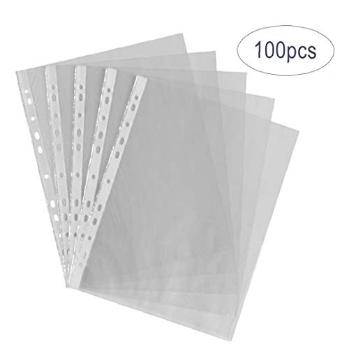 NIDONE Cancella Tasche Forate A4 Plastica Trasparente File Raccoglitore Ad Anelli Cartelle di Archiviazione Portafoglio Foglio Protector 100pcs