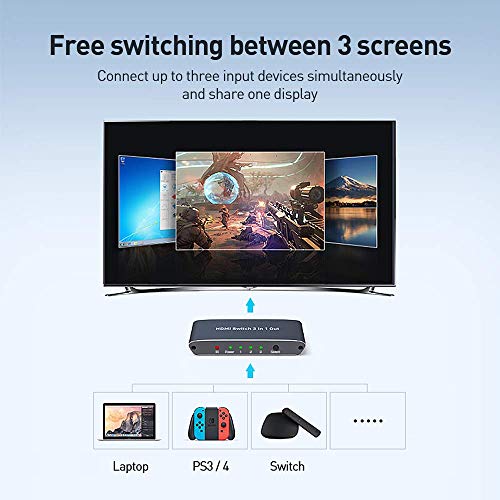 NIERBO HDMI Switch, Switcher HDMI 4K 3 x 1 Commutatore HDMI 3 Ingresso 1 Uscite HDMI Switch 3 in 1 out HDCP 2.2 Compatibile 3D 1080P HD con Telecomando per PS4 Giochi per Console Dvd Xbox PC HDTV