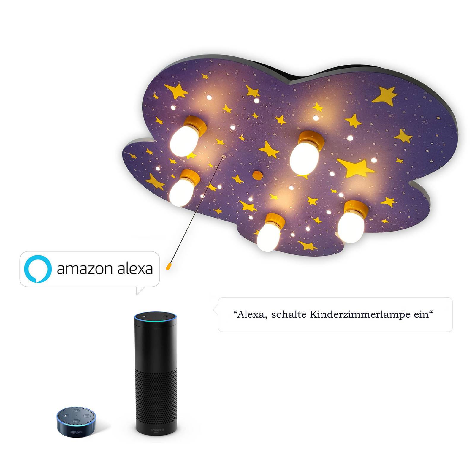 La plafoniera Night Sky per la camera dei bambini ha una piastra a soffitto di colore blu scuro con stelle gialle ed è dotata di 20 piccoli punti LED. Inoltre, sono presenti cinque prese E14 - dotate di interruttore a strappo con funzione snooze light - controllabili con comando vocale tramite Amazon Alexa/Dot (eWeLink Smart Home Fan Skill) o tramite tablet/smartphone grazie all'app eWeLink .it è la tua destinazione online per oltre 50.000 lampade e illuminazioni di stile per casa e giardino. Leader in Europa con oltre 5 milioni di clienti soddisfatti, offriamo design moderni e classici delle migliori marche tedesche e internazionali. Acquisti convenienti con spedizione gratuita oltre i 99 € e restituzione gratuita entro 50 giorni. Esplora le ultime tendenze, i classici e l'illuminazione intelligente su .it per creare l'atmosfera perfetta. Leggi le recensioni, scopri l'ampia scelta e illumina la tua casa con stile!