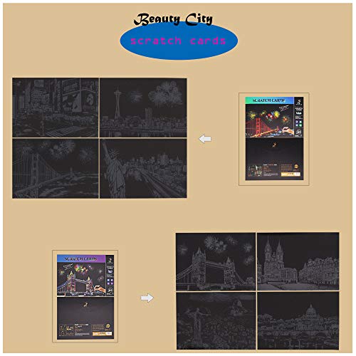 【Regalo perfetto per bambini e adulti】: la pittura a scratch è completa per artisti di tutte le età. Regalo ideale per compleanni, festa della mamma, festa del papà, San Valentino, anniversari, ecc. I motivi sono abbondanti in molte scene notturne in città. Può essere facilmente trasportato per le persone in viaggio.