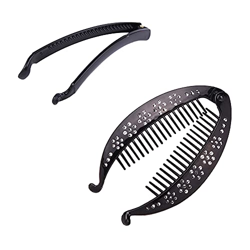 Nifocc Fermagli per capelli a forma di coda di pesce, clip con denti e strass, per donne e ragazze, 4 pezzi, colore nero
