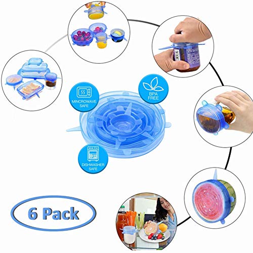 Set di 5 coperchi a ventosa in silicone per diverse dimensioni di tazze, ciotole, padelle o contenitori e può resistere fino a 450F. Il set è composto da uno di ogni extra large 30,5 cm, grande 25,4 cm, medio 20,3 cm, piccolo 15,2 cm ed extra piccolo 10,2 cm.