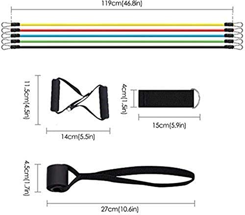 【FASCE DI RESISTENZA REGOLABILI A COLORI DIVERSI】: Giallo (10 libbre), Blu (20 libbre), Verde (25 libbre), Nero (30 libbre), Rosso (15 libbre). Tutte le bande di allenamento sono lunghe 48 ", e può essere utilizzato da solo impilato in qualsiasi combinazione per un equivalente massimo di 100 libbre.