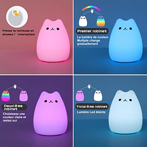 Cat Night Light per bambini gatto lampada per bambini adolescenti 7 colori lampade da tavolo decorazione della stanza con Usb ricaricabile carino Led regali di luce multicolore