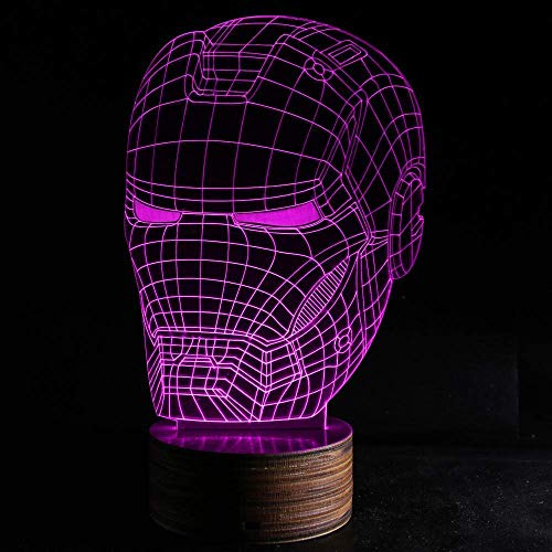 3D Night Light Iron Man Helmet Vision Led Telecomando In Legno Chiaro 7 Colori Illusion Atmosphere Lampada Da Tavolo Giocattolo Regalo Per Bambini