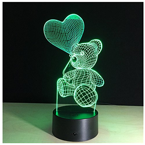 3D Nightlights, 7 Colori Cambiamento Della Lampada di Notte Touch Control, Migliore Per Gli Amici Dei Bambini (orso)