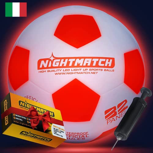 NIGHTMATCH Pallone da Calcio Luminoso - Pallone da Calcio Taglia 5 - Set Completo - 2 LED Attivati con Sensore per Divertirsi al Buio - Ideale per Grandi e Piccini - Bright Pallone da Calcio Bambini