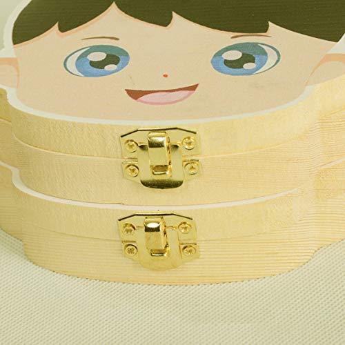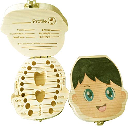 Nihlsfen Scatola per Denti in Legno per Bambini Inglese Stampa Colorata Denti da Latte Organizzatore ombelicale Custodia per Souvenir Regali per Bambini
