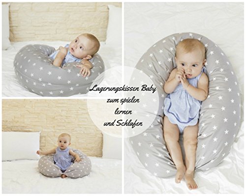 Niimo Federa Cuscino Allattamento e Gravidanza, Sfoderabile e Lavabile, 100% Morbido Cotone (Grigio-Stelle bianche)
