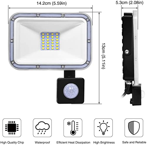 NIKEEYEN 20W Faretto LED da Esterno con Sensore di Movimento IP67 Impermeabile Faro LED da Esterno 6500K Bianca Fredda per Giardino Garage Parcheggio Corridoio Terrazza