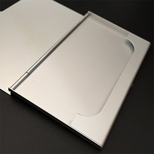 Nikgic - Porta biglietti da visita in lega di alluminio ultrasottile, 9,5 x 5,7 cm, colore: argento.