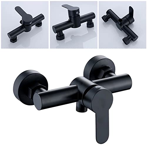 NIKJEBDF 2 rubinetti per vasca da bagno, colore nero, rubinetto doccia con una sola mano, rubinetto per doccia in acciaio inox, interruttore per valvola doccia
