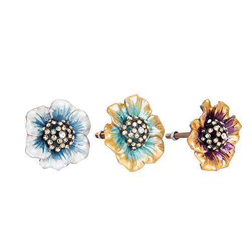 NIKKY HOME 2 PCS Pomelli in Metallo Fiore Elegante Pulsante Porta Armadio, Bagno per Maniglie per Porte e Cassetti Tira da Bagno, Cucina Manico, Camera da Letto, Armadio Blu