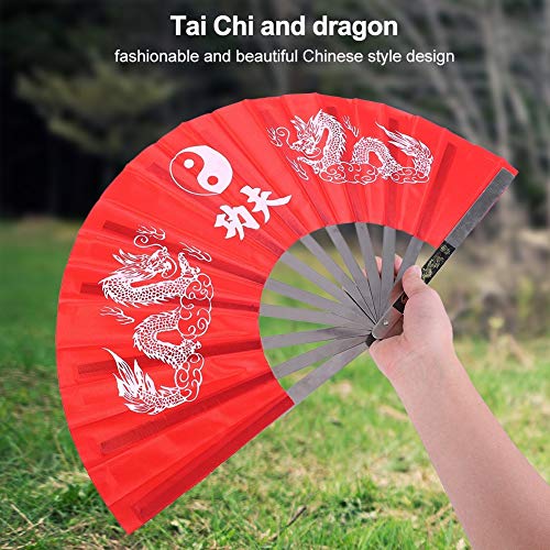 Nikou Tai Chi Fan, acciaio inossidabile cinese Kung Fu Tai Chi a mano Folding Fan Arts Danza di addestramento di pratica prestazioni del ventilatore for gli uomini/donne (Colore: Red)