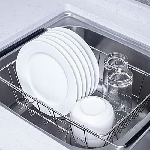 Niktule Expandable Over Sink Dish Drying Rack?Telescopic Drain Basket?Large Capacity Stainless Steel Dish Drainers, Dish Rack for Kitchen Sink Counter