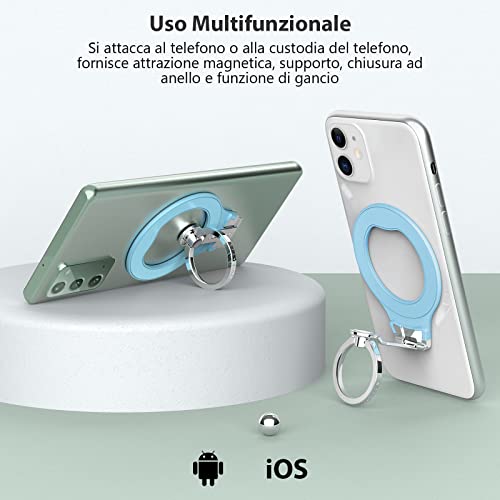 【Multifunzione】Combina le quattro funzioni di aspirazione magnetica, anello supporto cellulare, fibbia ad anello e gancio insieme Questo versatile supporto per telefono ti offre la possibilità di tenere le mani libere e proteggere il tuo smartphone da cadute accidentali scivolamenti e mentre sei