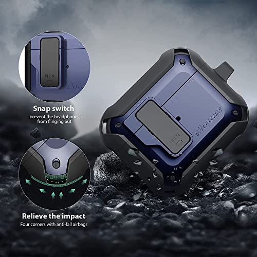 【Custodia Nillkin Airpods pro con serratura】: appositamente progettata per Airpods Pro. Custodia Airpods Pro con serratura per evitare che gli auricolari cadano, Airpods Pro Cover con moschettone, facile da trasportare.
