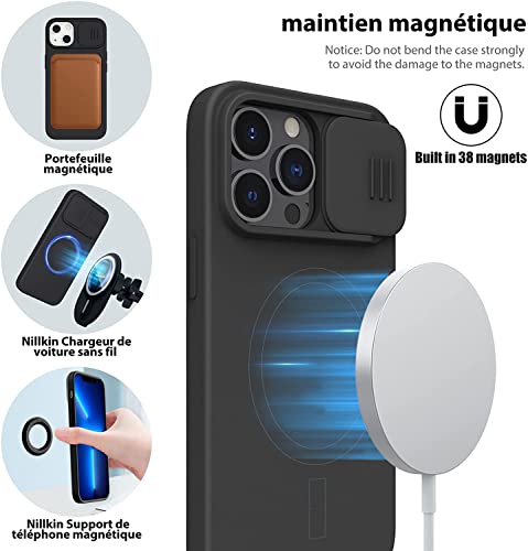 Nillkin Cover per iPhone 13 Pro Compatibile con Magsafe, Silicone Magnetico Cover Protettiva Telecamera Cover Cover Nero