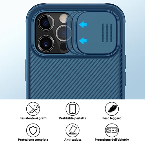 Nillkin Cover per iphone 12 pro/iphone 12 Compatibile con Magsafe, Camshield pro Magnetica Cover con Custodia per Fotocamera Scorrevole, Blu