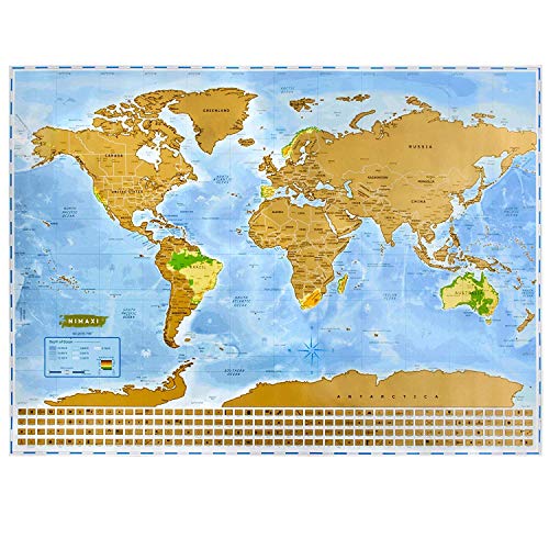 NIMAXI Mappa del mondo da grattare, dimensioni 83 x 60 cm, colore blu, formato XXL con bandiere da grattare