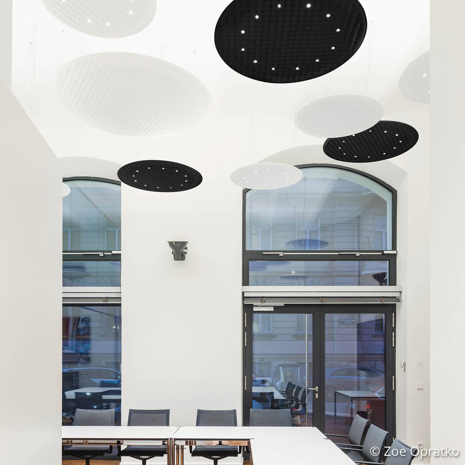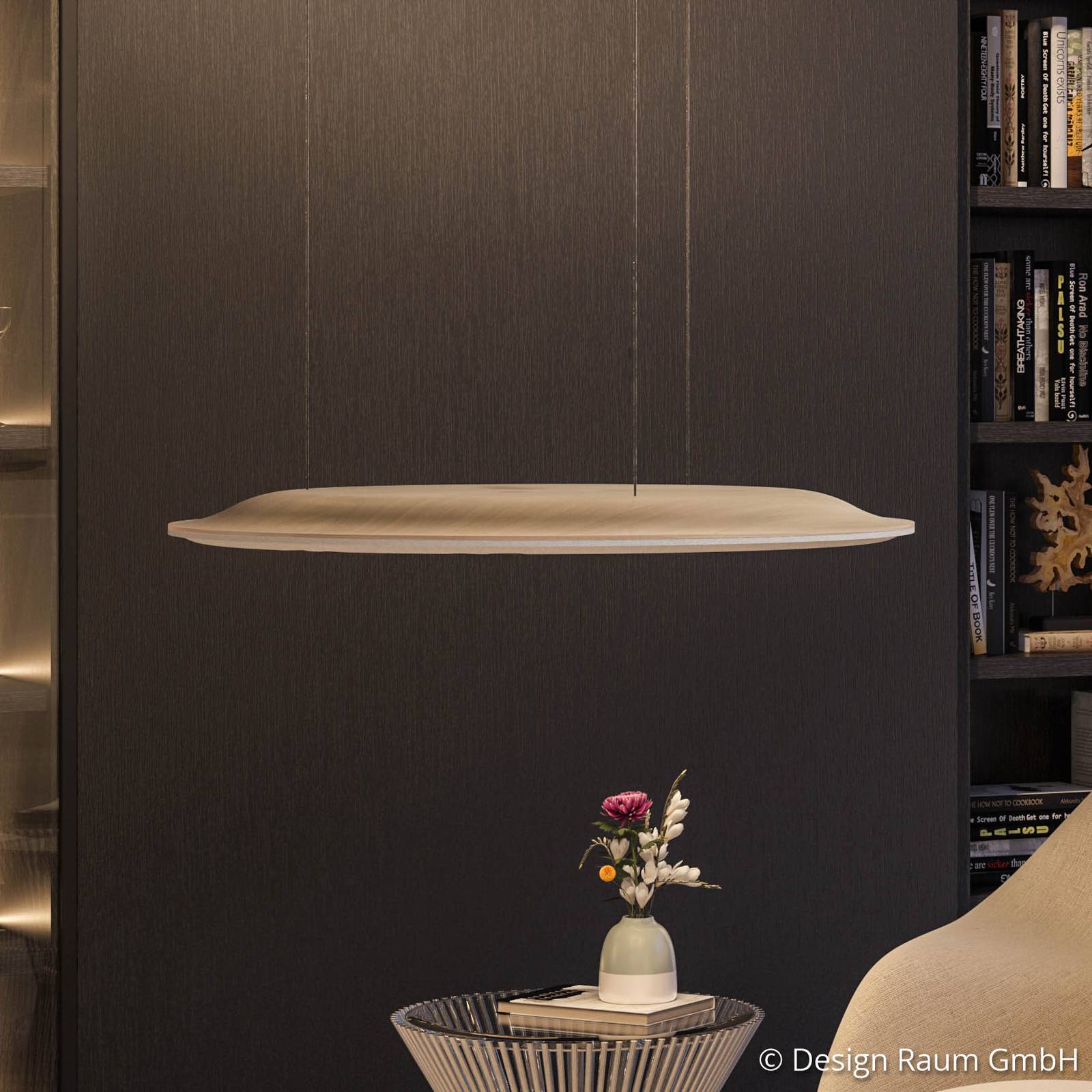 Apparecchio a sospensione LED acusticamente efficace Lighting Pad Lounge R 600 Vario con diverse possibilità di comando La serie di apparecchi Made-in-Germany Lighting Pad Lounge offre un'interpretazione moderna del materiale tradizionale del legno, combinando un design chic con una tecnologia contemporanea. Il pendolo in design rotondo consiste in un corpo di legno modellato di alta qualità, in cui un vello in rilievo è incorporato sul lato inferiore per l'assorbimento del suono. Il meccanismo Variolift integrato permette una comoda regolazione dell'altezza spostando il paralume su e giù con entrambe le mani in una gamma da 50 cm a 200 cm. La lampada può essere controllata, dimmerata e il suo colore di luce può essere cambiato tramite il controllo dei gesti e la tecnologia wireless Bluetooth® con l'app Connect Mesh. Si distingue tra tre diverse modalità: dimmerazione simultanea dei LED diretti e indiretti, dimmerazione dell'illuminazione indiretta verso l'alto e regolazione della temperatura di colore. In alternativa, il controllo è possibile anche tramite gli accessori ordinabili separatamente, il telecomando Connect Mesh o il moderno interruttore a muro. - Campo di rilevamento del sensore: 7 - 20 cm - Vello acustico: ritardante di fiamma (classificato B-s1, d0) - Classe di assorbimento acustico B