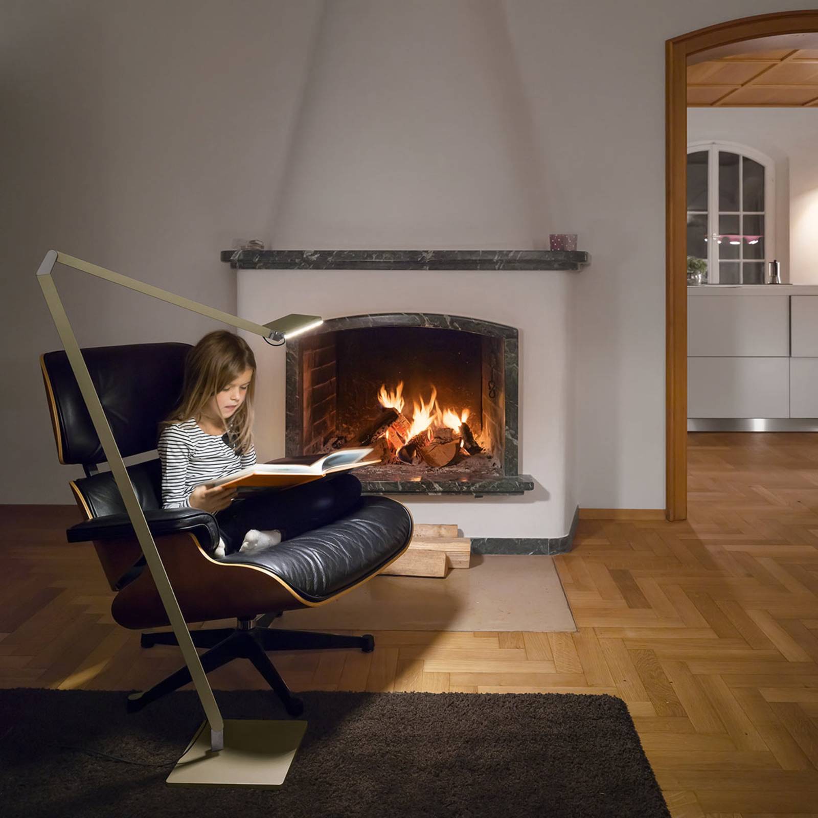 Lampada da terra flessibile a LED da lettura Roxxane Home Home New con controllo dei gesti La nuova luce di lettura a LED Roxxane Home New è estremamente comoda per risolvere le sfide di tutti i giorni - grazie al suo controllo gestuale di facile utilizzo. Basta un semplice movimento di rotazione con la mano sopra la testa della lampada per abbassare la luce o per accenderla e spegnerla comodamente. La sorgente luminosa è coperta da un diffusore in policarbonato per evitare di abbagliare la luce. La classica struttura in alluminio è dotata di due cerniere e di una testa a snodo 3D a 270°, che permette alla lampada da terra di regolare il cono di luce in base alle preferenze personali. I LED integrati forniscono una luce bianca calda a fascio largo, che è inoltre dotata di un elevato indice di resa cromatica di oltre 90 RA. Di conseguenza, l'ambiente viene percepito come particolarmente naturale e resistente ai colori. La lampada da terra Roxxane Home LED è un prodotto di qualità "Made in Germany". Brilla per la sua tecnologia innovativa, i LED a risparmio energetico e il controllo touch-free. Grazie al suo design moderno e allo stesso tempo semplice, questa robusta lampada da terra può essere facilmente integrata in molti arredi per la casa.