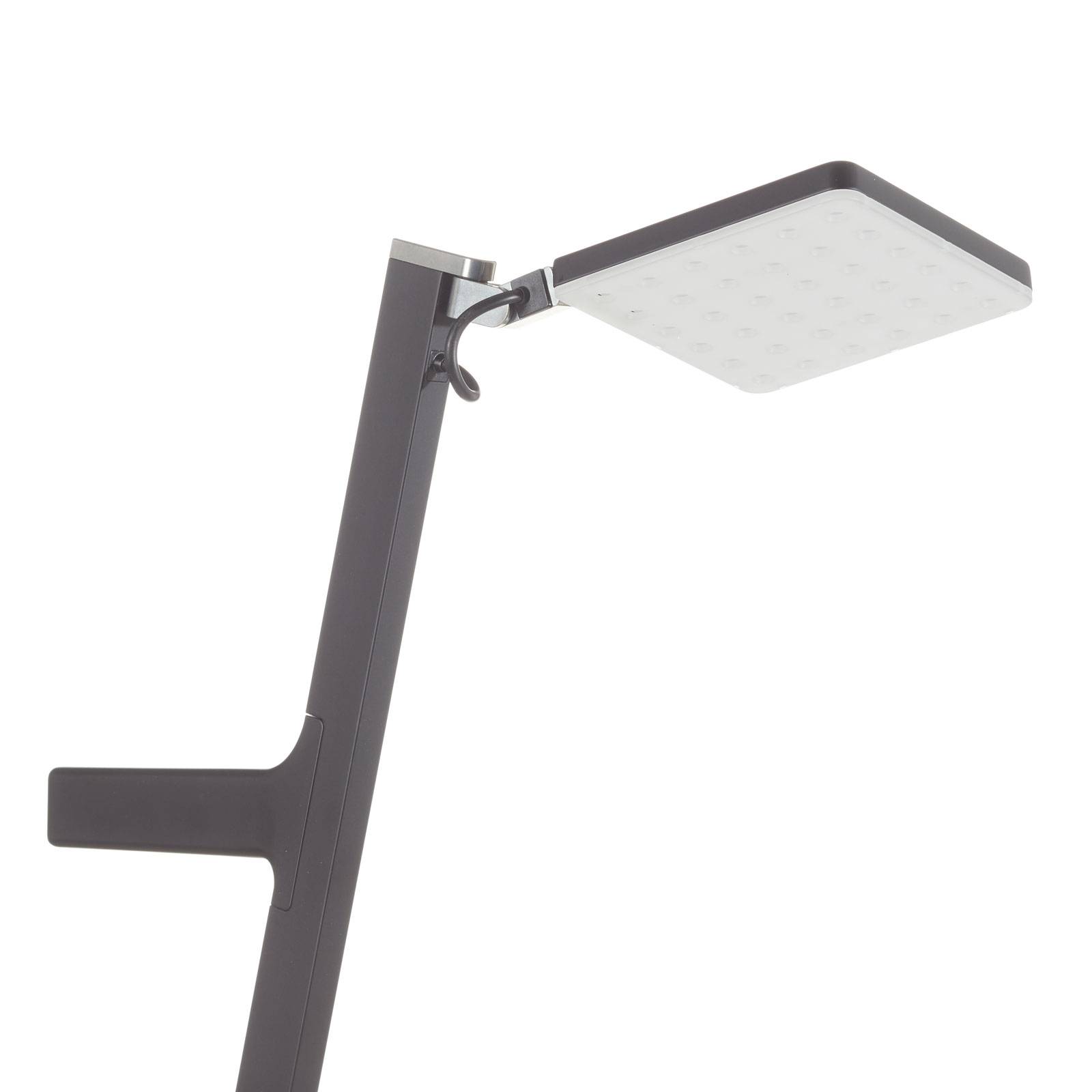 Lampada da terra a LED Roxxane Leggera 101 CL - ricaricabile e dimmerabile La lampada da terra Roxxane Leggera LED è un tuttofare. Grazie alla batteria ad alte prestazioni, può essere utilizzato indipendentemente dalla rete elettrica, non causa alcun ingombro di cavi e può anche servire come caricabatterie per altri dispositivi elettronici. Inoltre, può essere comodamente azionato dal controllo dei gesti ed è anche infinitamente dimmerabile. Il design moderno e pratico incontra una vita interiore tecnicamente sofisticata nella lampada da terra Roxxane Leggera. Una maniglia sul telaio facilita il trasporto della lampada, che pesa comunque solo 1,5 kg circa. La testa della lampada può essere orientata e ruotata fino a 270 gradi. Caricare la batteria è un gioco da ragazzi grazie al disco di ricarica, che si aggancia semplicemente in modo magnetico sul lato inferiore della base. Per mezzo del controllo dei gesti, la luce può essere accesa e spenta, nonché dimmerata nella gamma da 25 a 800 lumen. Il funzionamento normale avviene nella gamma fino a 400 lumen. Sopra i 400 lumen, la luce è in modalità boost, dove consuma più energia, il che riduce di conseguenza la batteria. Ulteriori vantaggi tecnici: - Porta di ricarica USB-C aggiuntiva e cavo di ricarica - Fino a 100 ore di durata della batteria - batteria agli ioni di litio sostituibile - Ottimo indice di resa dei colori Ra > 90