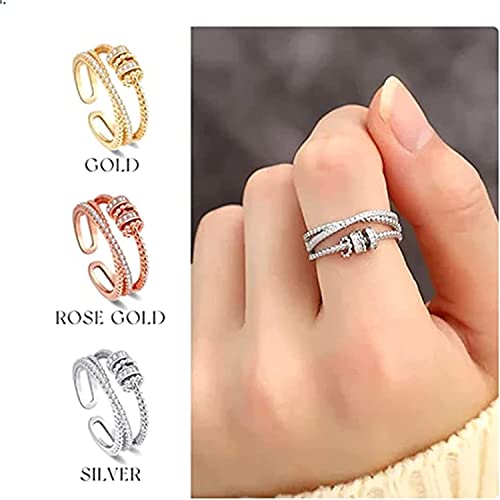 Nimedala JANSIO Threanic - Anello a tripla rotazione JANSIO, anello a triplo spin Threanic, per griglia da donna (Gold X2)
