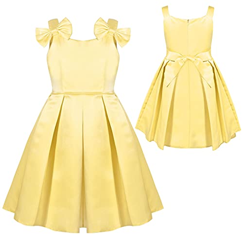 Nimiya Vestito Bambina Elegante Vestiti Damigella d'Onore con Spalle Larghe Tuta Ragazze Abito da Matrimonio Sposa Vestito Cerimonia Comunione Vestitini Festa Compleanno Giallo 7-8 Anni