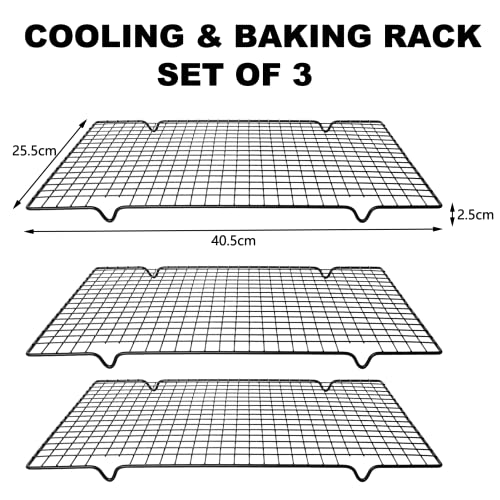 Nimokong Griglia per Crostata, Gratella per Dolci/Griglia Raffreddamento/Gratella, per Biscotti/Torte/Grigliare/Affumicare (Nero Rettangolo, 3 Pezzo)