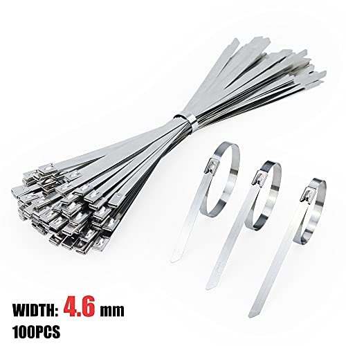 NIMUDU Fascette,Fascette Plastica 100 Pezzi Acciaio Inossidabile Cavo Cravatta Larghezza 4.6mm Heavy Duty Autoblocco Multiuso in Metallo di Scarico in Metallo (Color: 4.6mm x 150mm)