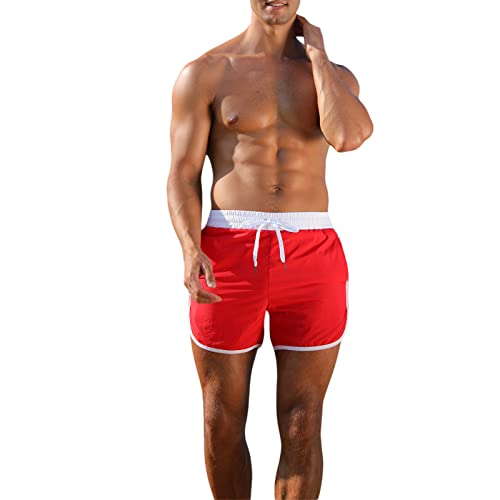 NINALUNA Pantaloncini da nuoto da uomo Beach Swim Patchwork Summer Costumi da bagno con coulisse Costume da bagno Yoga, Rosso, XXL