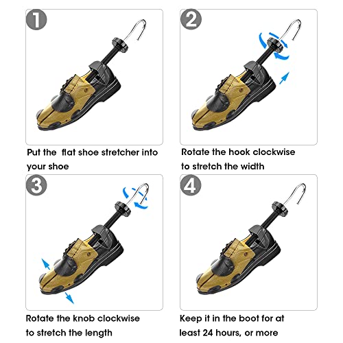FACILE DA USARE: seguire le istruzioni qui sotto, lasciare gli assunti di tensione almeno per 24 ore. Più rimane la barella scarpa, più si estenderà la tua scarpa. Alcuni materiali possono costare diversi giorni per allungarsi.