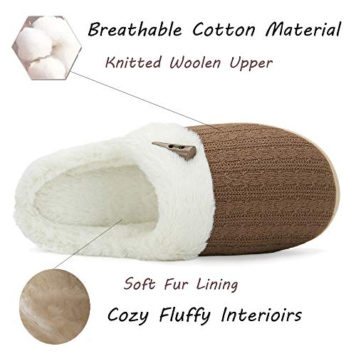 NineCiFun Pantofole da donna Comfort Memory Foam Pantofole morbide e pelose Scarpe da letto calde Pantofole antiscivolo(EU36/37,marrone1)