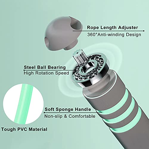 NINECY Corda per saltare regolabile per adulti, per fitness, Speed Rope con cuscinetti a sfera professionali e manici in schiuma antiscivolo, ideale per perdita di peso, donne e bambini (verde)