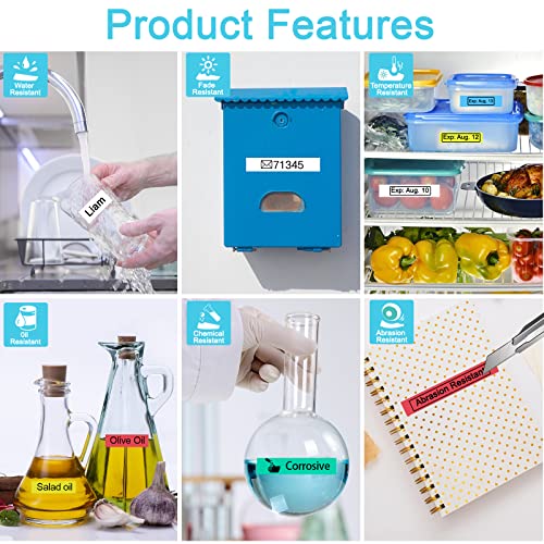 Con adesivo standard, il nastro D1 sostitutivo è resistente all'acqua, ai prodotti chimici, allo sbiadimento, alla temperatura e ai raggi UV. Non sbavature o sbavature. Non lascerà residui durante la rimozione.