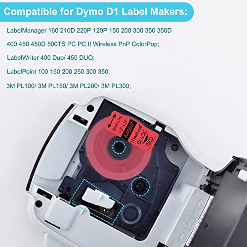 NineLeaf 45013 45016 45017 45018 45019 - Nastro per etichette compatibile con D1 100 160 210D 360D 420P 450D PnP LW 450 DUO, nero su bianco, giallo, rosso, verde, blu, 5 pezzi mm x 7 m.