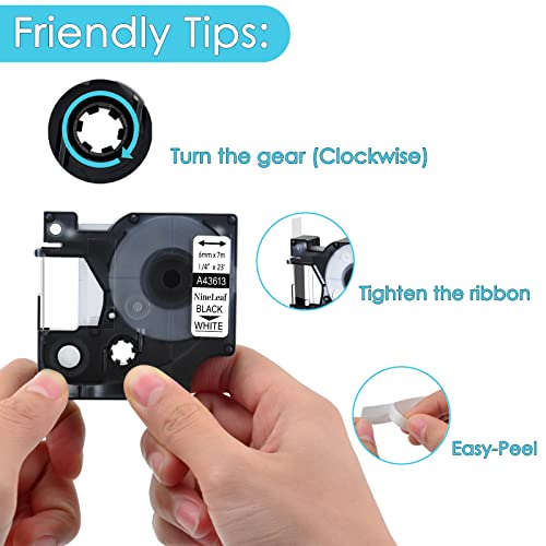 NineLeaf - 2 Rotoli di nastro adesivo standard D1 43613 da 6 mm per etichettatrice Dymo LabelManager 160, scritta nera su sfondo bianco, in poliestere