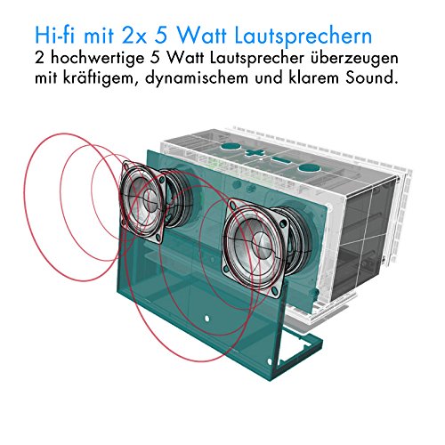 Due potenti altoparlanti 5 W offrono suono cristallino avvolgente con bassi potenti, ci si aspetta da questo speaker compatto non tra di loro.