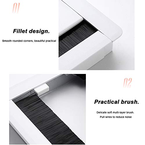 NingdeCK Passacavo da scrivania per PC e computer, organizer per cavi, con coperchio per foro per spazzole, scatola rettangolo porta linea in lega di alluminio per mobili per ufficio (bianco)