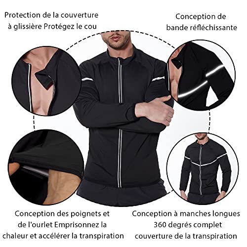 NINGMI Tuta Sauna Uomo Felpa - Camicia Manica Lunga Giacca Allenamento Body Shaper Zipper Top Dimagrante Fitness Trainer Gym, Nero9154, L